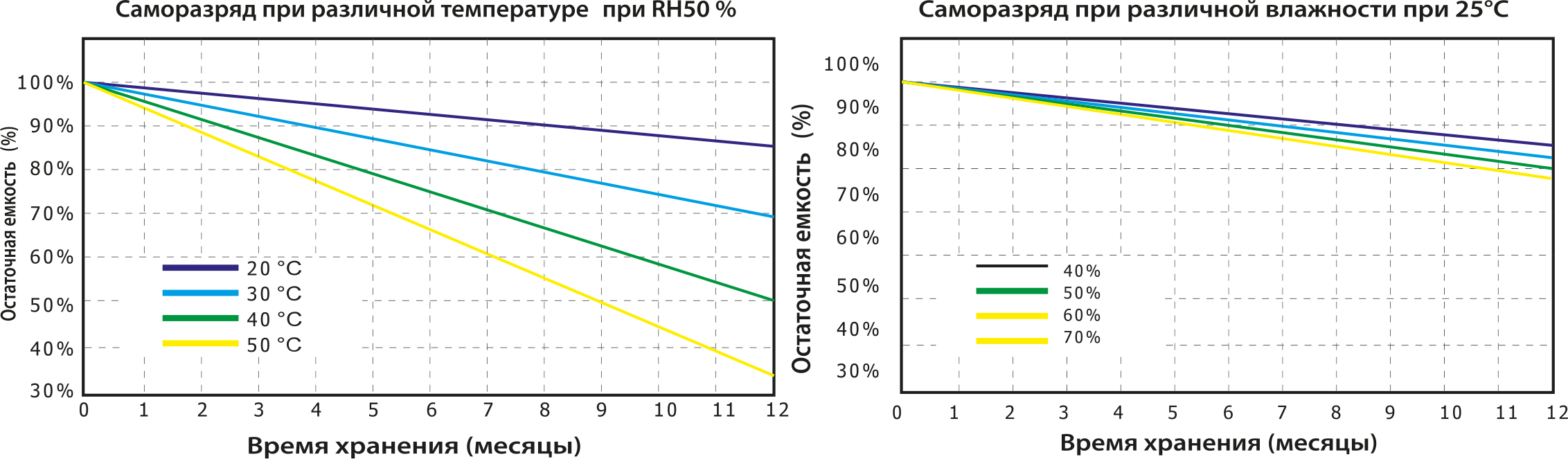 Рабочая температура при разряде — от -20°С до +60°C (Ниже 0°С работа с уменьшенной мощностью)