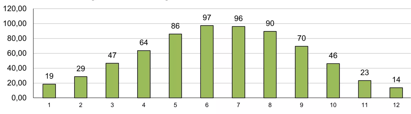 Минимальная выработка зимой — 0,44 кВт в сутки